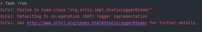 しかし起動時にSLF4Jがないというような警告を受けた。