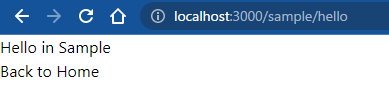 開発サーバを立ち上げると、ブラウザからはlocalhost:3000/sample/helloのパスでアクセスできる。