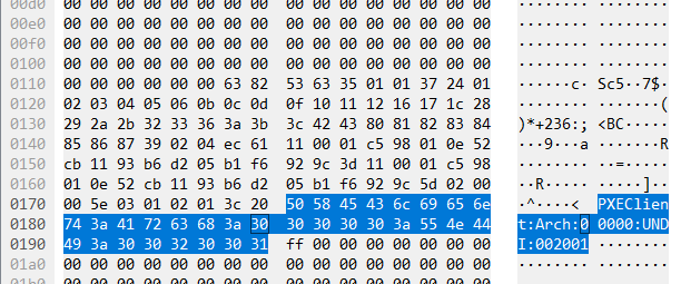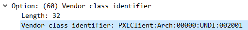 この部分はDHCPのDiscoverにあるOption 60を見て送信元がPXEかiPXEか判定しています。