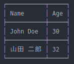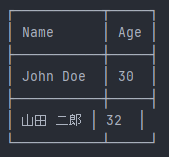 日本語で表示が崩れる問題は、等幅フォントを利用することで解決します。(HackGen Console NFを利用)